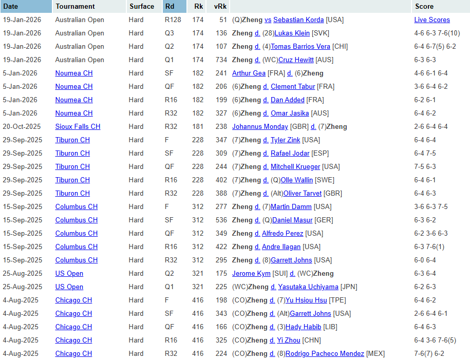 - AZN Excellence: Daaaaaaamn, Michael Zheng! The 21-year-old NCAA champion from Columbia was a revelation in his five-set dispatch of Sebastian Korda 6-4, 6-4, 3-6, 6-7(0), 6-3. Zheng came through qualifying to make his tour-level debut and win. He's been doing a lot of winning since August: