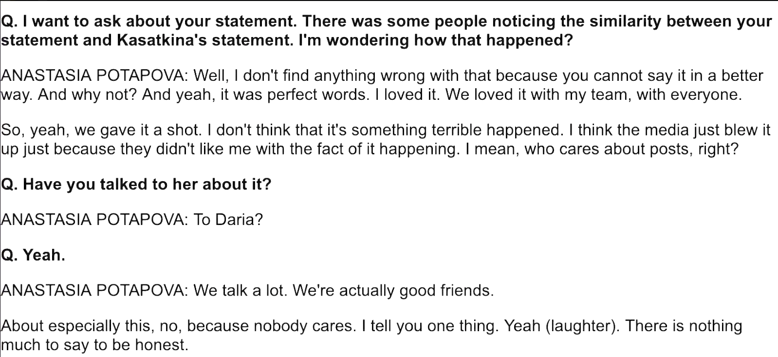 - Anastasia Potapova pulled out a comeback win over Suzan Lamens and then was asked about the copy-pasta thing: