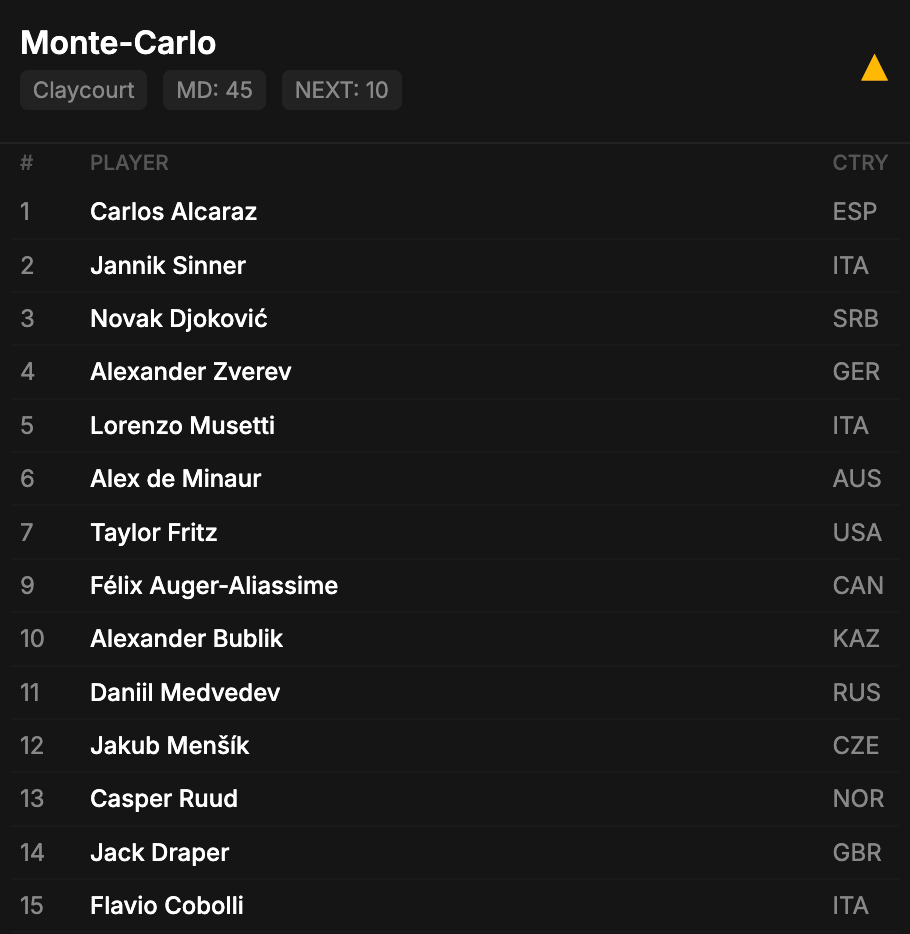 - Monte Carlo entry list is out. (Tick Tock Tennis)