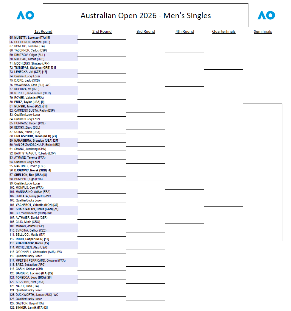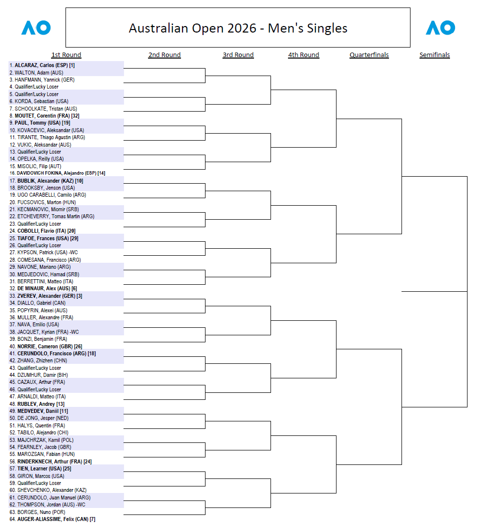 Draws up: 2026 Australian Open