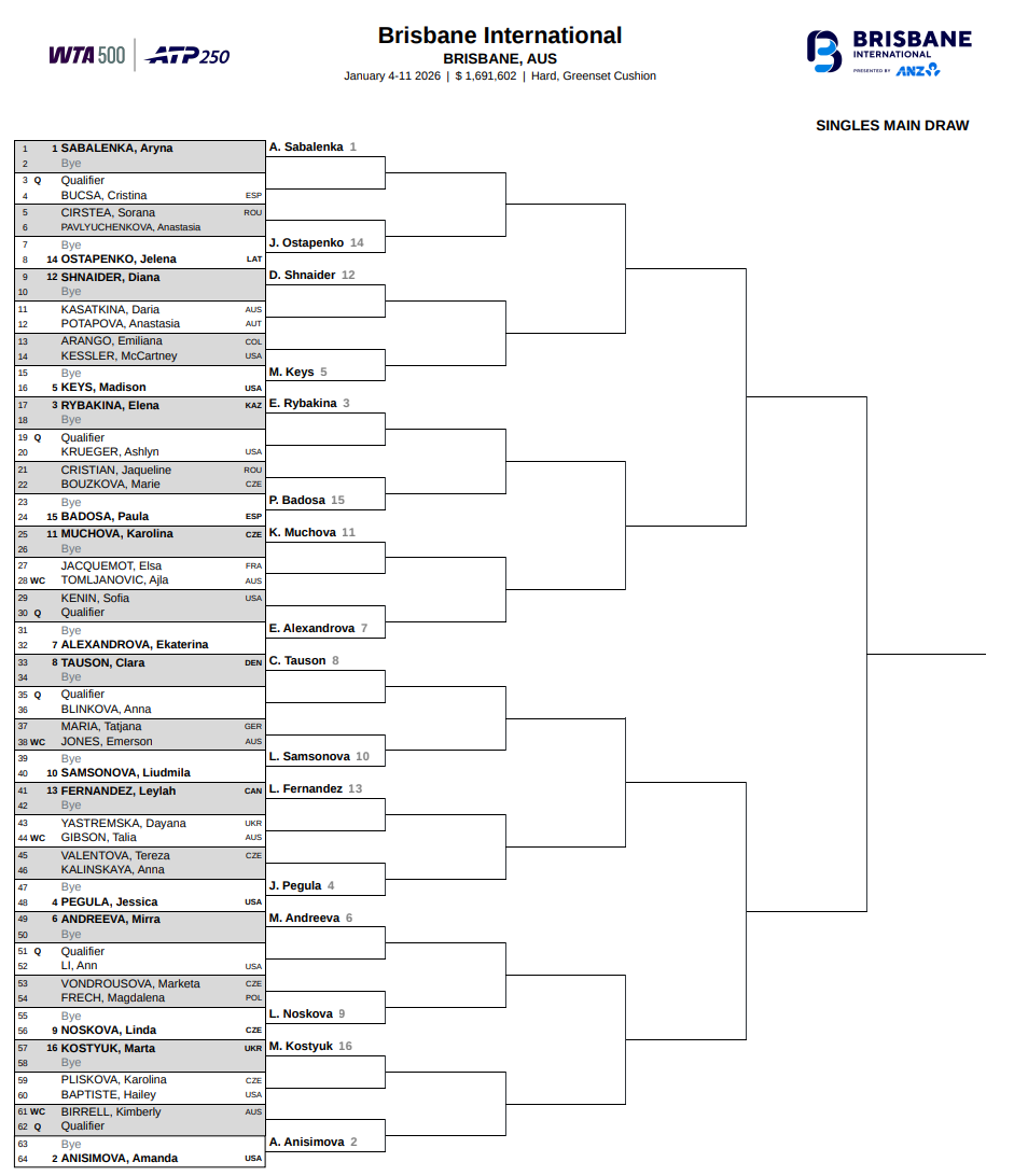 Week 1 Draws are out and I'll just drop them below because I am too busy laughing about Kasatkina vs. Potapova 1R Brisbane.