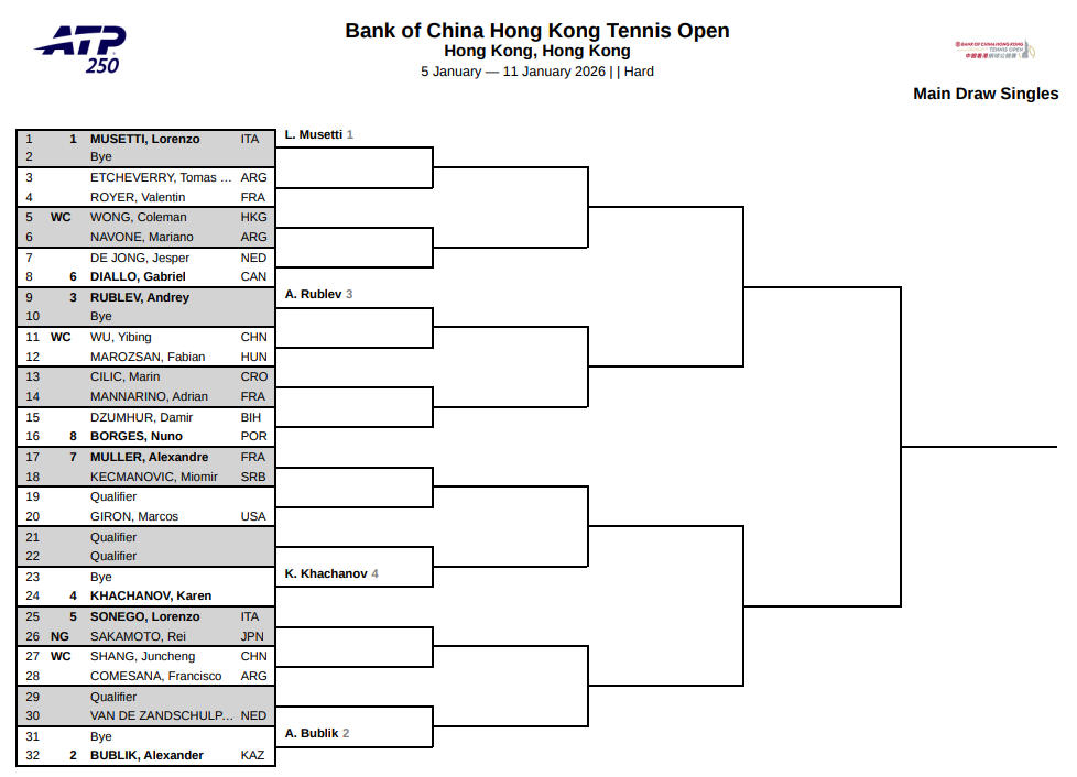Top seeds: Lorenzo Musetti, Sasha Bublik, Andrey Rublev, Karen Khachanov