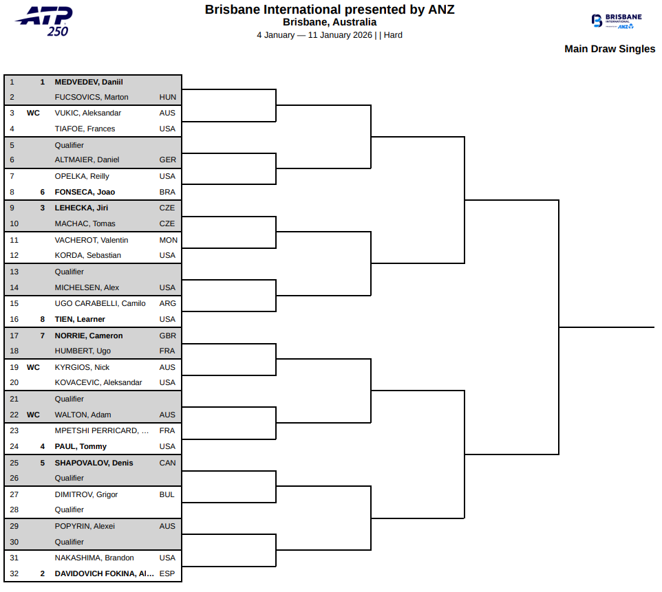 Top Seeds: Daniil Medvedev, Alejandro Davidovich Fokina, Jiri Lehecka, Tommy Paul
