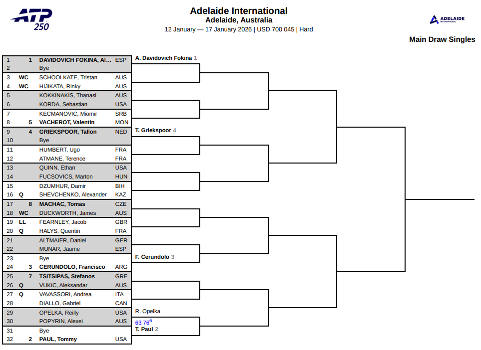 Top seeds: Alejandro Davidovich Fokina, Tommy Paul, Francisco Cerundolo, Tallon Griekspoor