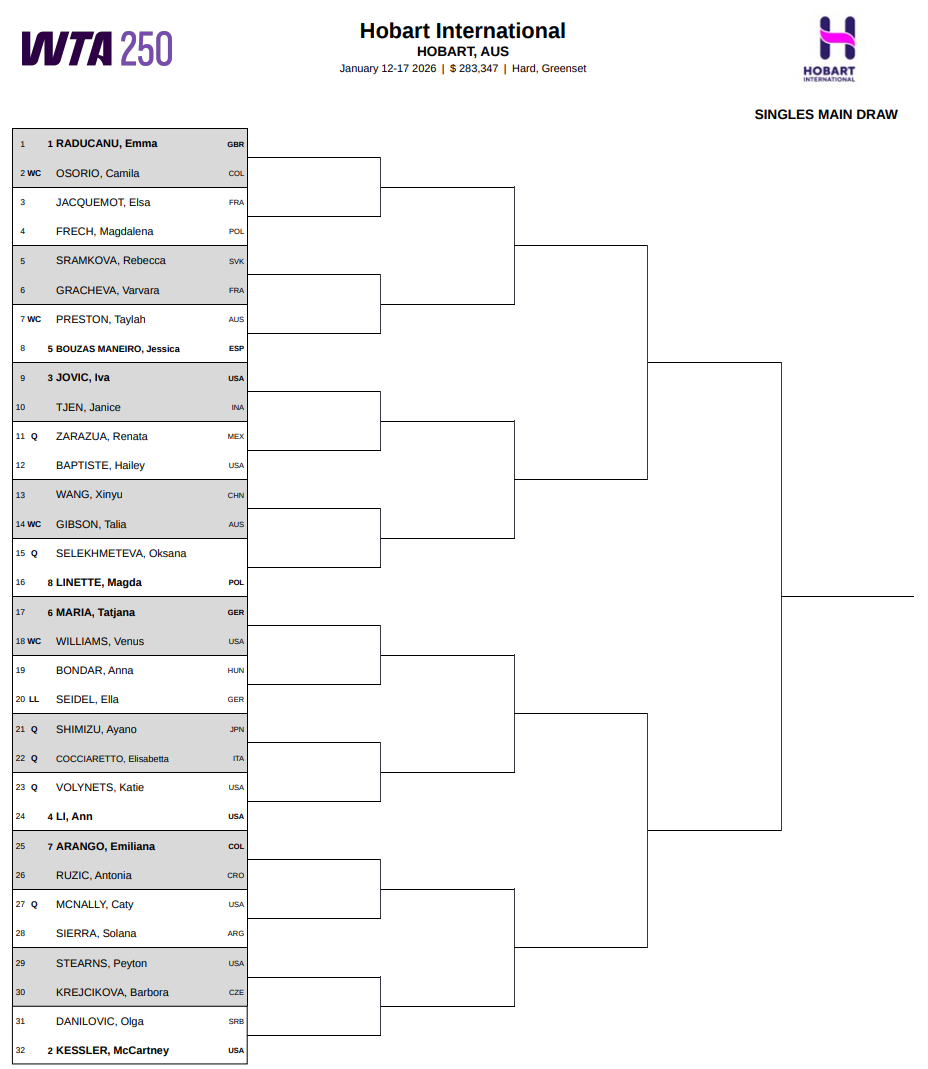 Top seeds: Emma Raducanu, McCartney Kessler, Iva Jovic, Ann Li