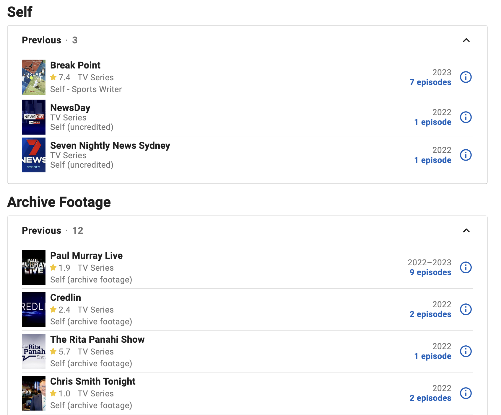 So in the process of relearning how to update this website, I googled myself to see if this site came up at all. In the course of doing that, I discovered I have an IMDB profile.